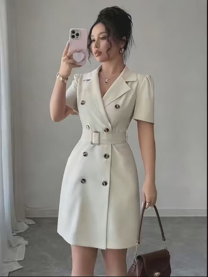 Robe blazer beige clair à double boutonnage 🌾